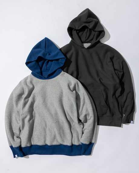 〈BEAMS PLUS〉ではお馴染みの別注ミドルウェイトを用いて、クルーネック、プルオーバーパーカ、パンツ、また本イベントのために製作したダブルフェイスプルオーバーパーカやインディゴブルーをイメージしたブルーカラーが登場。
