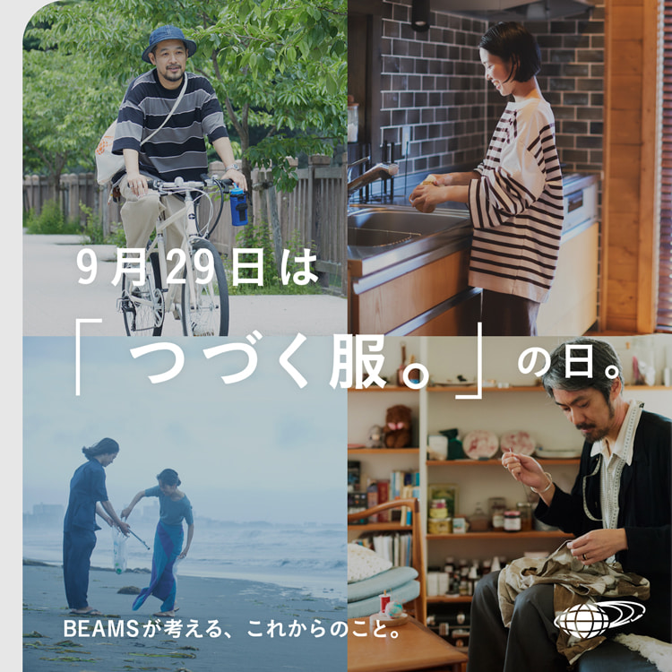 ファッション業界はサステナビリティにおいて多くの課題を抱えています。ビームスでは、事業・バックオフィス・コミュニティとの繋がりにおいて、自然環境・資源・エネルギー・心身のウェルネスなどにおける持続可能性と、ビームスと関わる全ての人の幸せを改めて意識したサステナビリティ経営方針を掲げています。ファッションを楽しむ人の暮らしにおけるサステナビリティを提案することは、セレクトショップとしてこれまで数多くのライフスタイルを日本のマーケットに提案してきたビームスに課せられた大きな役割であると考え、「つづく服。」プロジェクトを2021年6月に発足いたしました。 そして2021年9月29日を「つづく服。の日」(つづく=9、ふく=29)と定め、お客様と共に身の回りのモノのライフサイクルを考える記念日として一般社団法人 日本記念日協会に申請し認定登録されています。