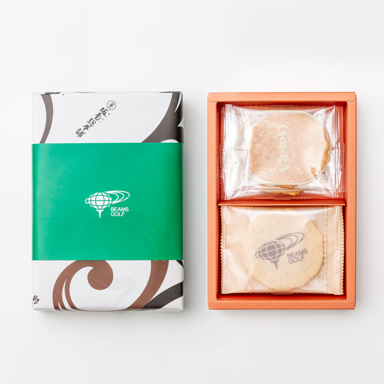 また、オープンを記念して¥16,500(税込)以上お買い上げいただいたお客様に〈BEAMS GOLF〉ロゴを入れたオリジナルデザインの『 坂角総本舗』の元祖海老せんべい“ゆかり”をプレゼント。