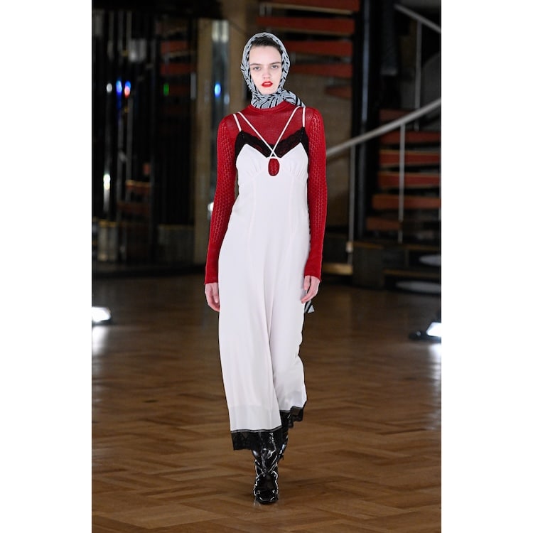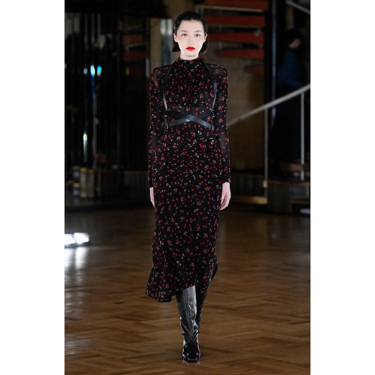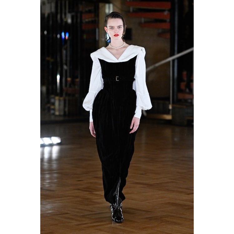 今季の〈FETICO〉は、1950年代のピンナップカルチャーやボンテージファッション、さらにオートクチュールの優美なドレスをインスピレーションに、ブランド独自のエッセンスを加えて表現。フィット&フレアのシルエットを用いたワンピースやジャケットドレスは、ウエストのタイトさと裾のボリューム感が女性の曲線美を美しく演出します。ツイードやベルベットなど秋冬らしい素材に加えシーズナルなプリントを取り入れたラインナップも必見です。