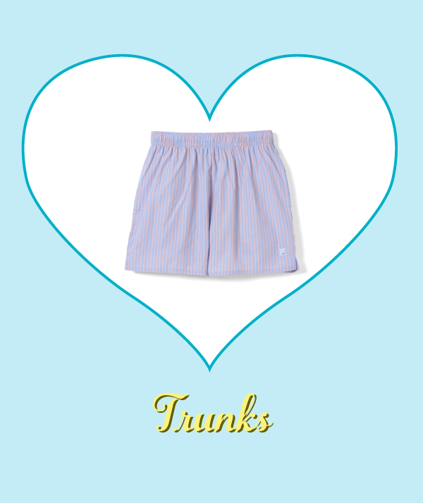 シューズ同様に本コレクションを象徴するピンク × ブルーの配色に。リラックスしてテニスを楽しめるようなトランクスを1枚でゆったり着るのはもちろん、〈Ray BEAMS〉らしくパンツとのレイヤードスタイルもおすすめです。
