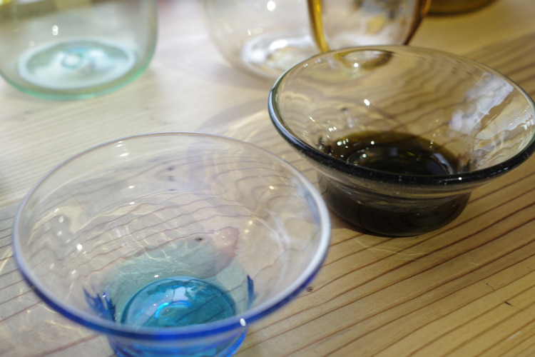 「蒼白い磁器は涼しげで奥ゆかしさがあり、夏の色鮮やかな食材が引き立ちます。小鉢にしても、冷製スープでも焼酎ロックで呑んでも、蕎麦猪口の使い道は無限大です」