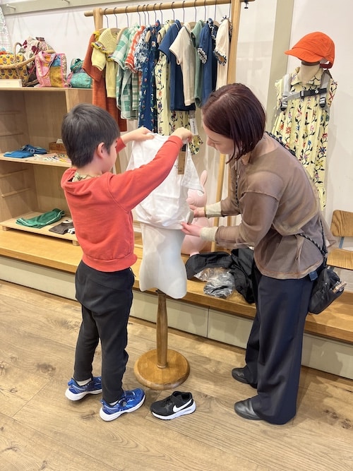 洋服の畳み方やお客様への挨拶といったお仕事はもちろんのこと、実際の商品を使って自由にスタイリングができるコンテンツも用意されており、子どもたちの創造性を刺激するイベントになっています。