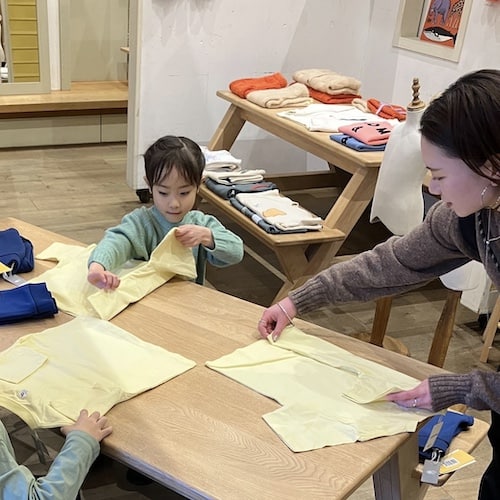 商品が綺麗に見えるように、ショップスタッフが実践するプロの畳み方を学びます。 きれいに畳む練習を通じて、商品の魅力の引き出し方と店舗運営の裏側を体験します。