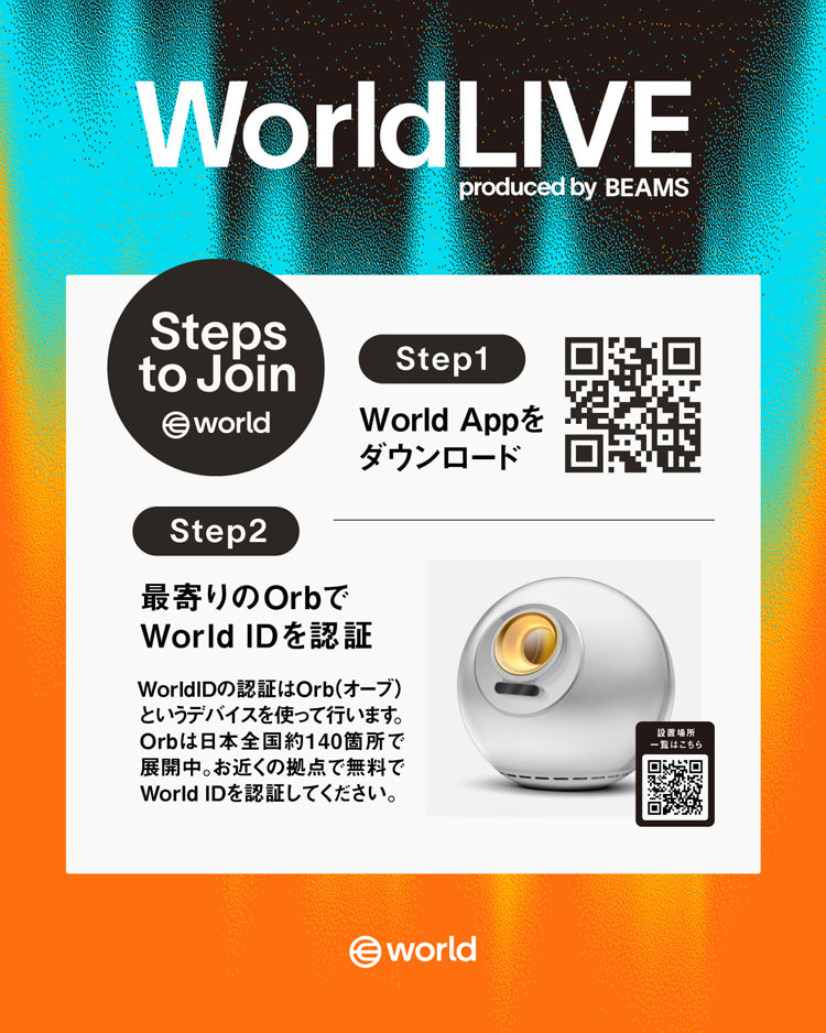この課題に対し、ビームスとWorldは「体験も、ファッションも、本物の人間に届けたい」という想いのもと、個人情報を一切開示せずに“人間であること”を証明し、“the real human network”への参加を選んだ方だけが体験できるイベントを実現します。