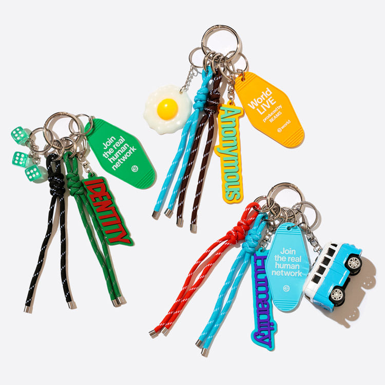 このキーホルダーは、人と人との繋がりを可視化するコミュニケーションツールです。イベントの仲間である証の「編みキーチェーン」、自らの価値観を示す「ラバータグ」、そして感性で選ぶ「オムニバス・アイテム」。正解のない自由な組み合わせで、あなただけの唯一無二のアイデンティティを形にすることができます。