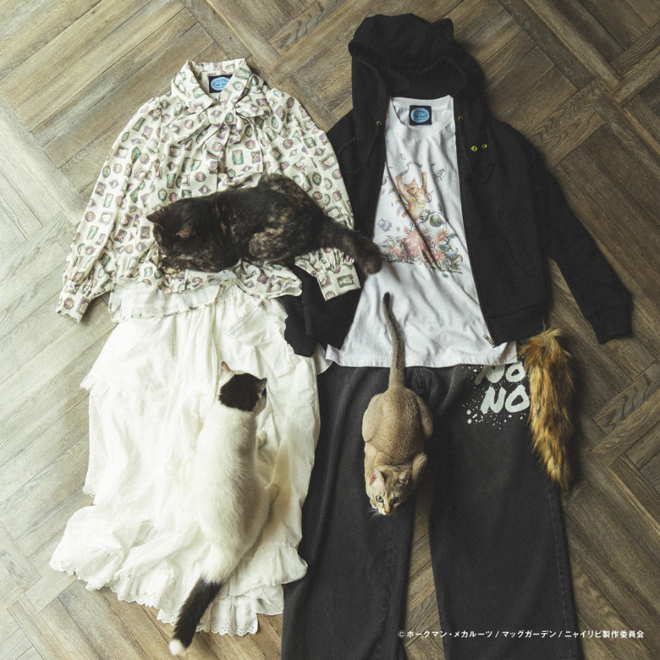 本コレクションは、漫画・アニメとのコラボレーションを得意とする〈マンガート ビームス〉と猫モチーフでお馴染みの〈mmts〉それぞれの個性を象徴するラインナップとなっており、作中に登場する猫カフェ「メゴコロ・ネコメ」のエプロンや、〈mmts〉のシンボル的存在である総柄アイテムなど全12型で登場。さらに今回特別に、中川翔子氏が猫になった姿を、原作の作画を担当しているメカルーツ氏が描き下ろしたアートワークをTシャツに落とし込みました。