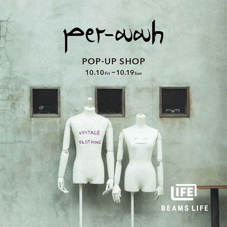 ビームス ライフ 横浜では、三軒茶屋と下北沢の間に店を構える〈per-aah(ペルアア)〉のポップアップショップを開催します。