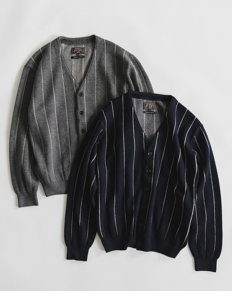 英国調ストライプの正統派な雰囲気とワイルドさを兼ね備えた柄としてフォーカスを充て、普段着らしいカーディガンとして昇華しました。光と影を表現したストライプ柄で、幅広いお客様に好まれる二面性を演出しながらも、トラディショナルなスーツスタイルを尊重しつつ、現代的なサイズ感で上品なストライプ柄を表現しました。