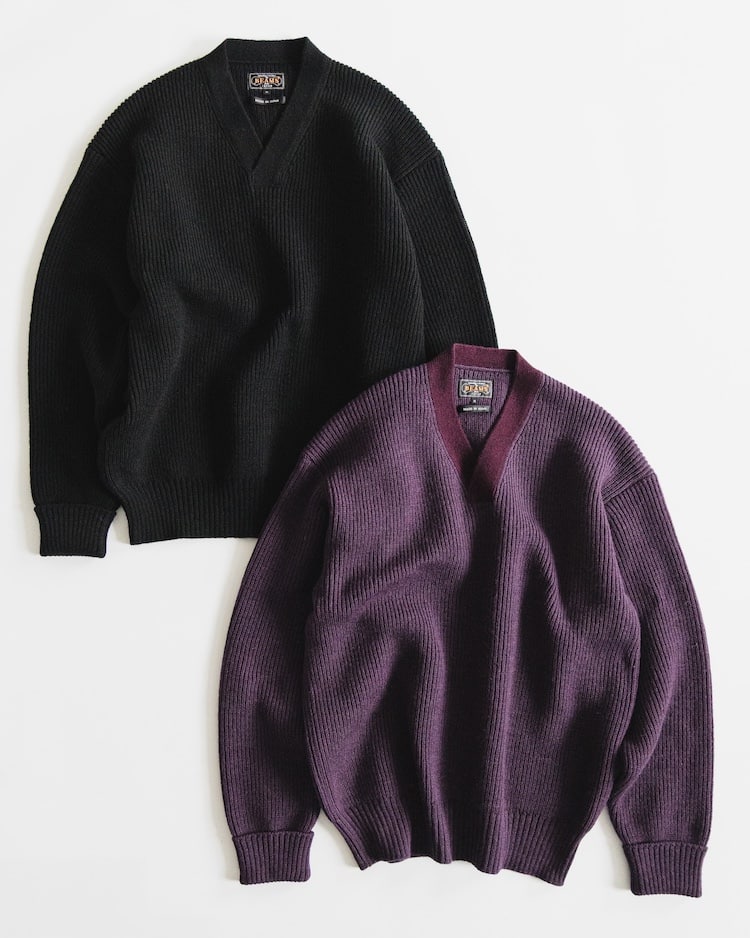 アメリカ軍由来のJeep Sweaterをベースに、アウトドアライクな表情にアップデート。