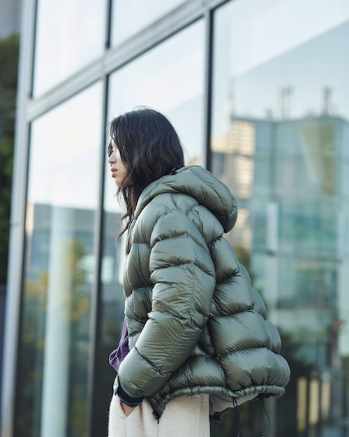 ダウンにはブランドのリサイクルダウン(700フィルパワー)を採用し、US Lサイズで240gのダウン量を確保。ジッパー裏のフラップにもダウンを封入することで冷気の侵入を軽減し、真冬のNYのような極寒下でも快適に過ごせる高い保温性を実現しています。