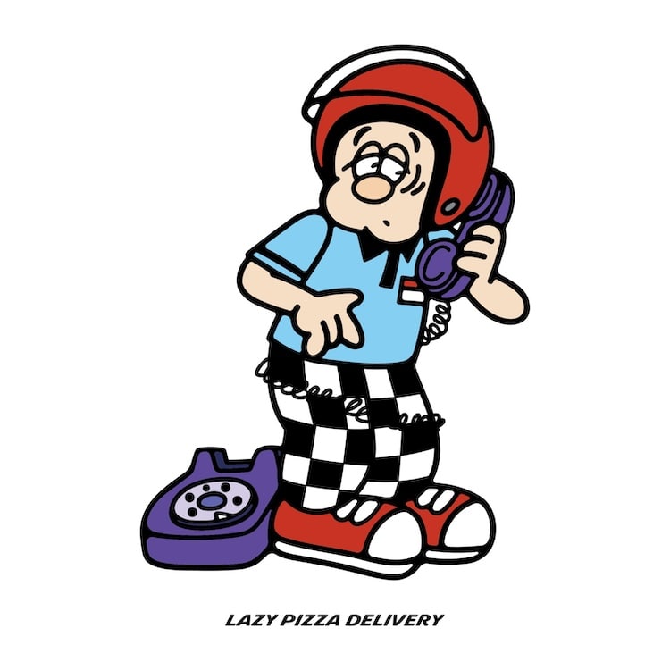 ふと見かけた【lazy day will start with a pizza delivery】という文からイラストを起こしたことをきっかけにLAZY PIZZA DELIVERYを開始させる。
