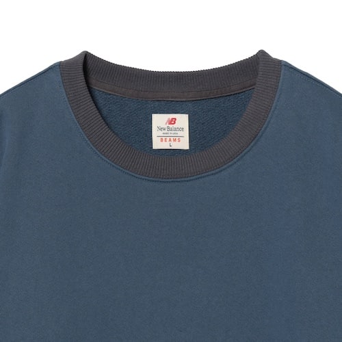 米国製440グラムのコットンフレンチテリーを使用し、ガーメントウォッシュ加工が施されたクルーネックスウェット。定番デザインにカンガルーポケットを配置した〈BEAMS〉らしいデザインとフィッティングを採用したユニークな“Made in U.S.A.”アパレルです。左袖に「New Balance Made in USA」ロゴ刺繍入り。