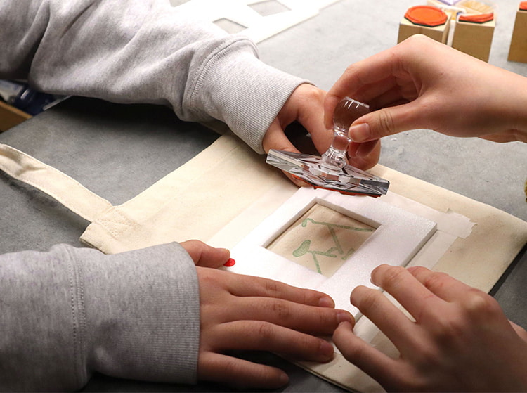 色とりどりのハギレを組み合わせて、自分だけのアート作品を作り上げる、創造性を育む体験です。
