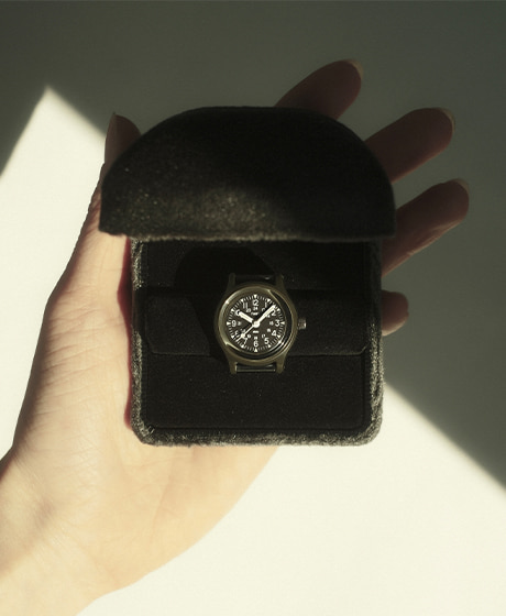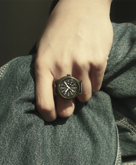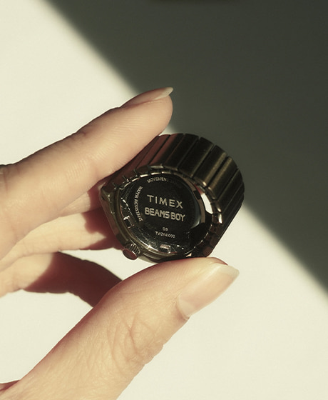 本作は、1990年代に実在した〈TIMEX〉のリング型ウォッチから着想を得て、バイヤーが長年にわたり別注を熱望してきた〈TIMEX〉の代表作『Original Camper』を、〈BEAMS BOY〉だけのリングウォッチとしてすべて一から製作しました。ミリタリーウォッチ特有の無骨な佇まいと、指元に彩るコンパクトなフォルムが融合した、今回のアニバーサリーイヤーに相応しいアイテムです。
