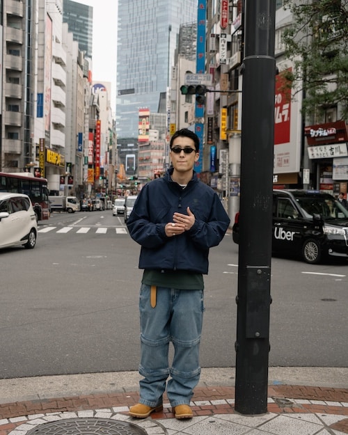 フットウェアは、象徴的な『6インチブーツ』をベースにしながらも、あえてレースホールを排除し、型から製作した『リングブーツ』です。ミニマルかつタフな佇まいを追求した、〈BEAMS〉仕様の別注モデルとして誕生しました。