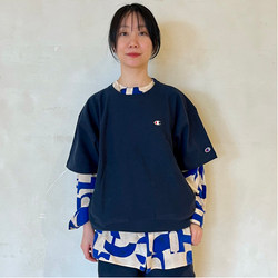 【店頭でご好評なTシャツ!】Champion × BEAMS BOY / 別注 リバースウィーブ(R) Tシャツのインナーに総柄シャツを重ねて今から着れるコーディネート!スウェットの様に裾がリブになってりるため1枚で着ても良い◎