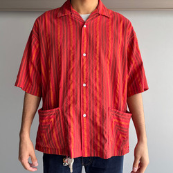 ドビーストライプオープンカラーシャツ。夏らしいビビットなカラーリングがおすすめです。ワイドなフィット感になっています。独特なポケット配置も他にはない、オープンカラーシャツです。