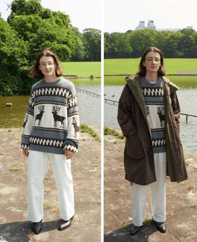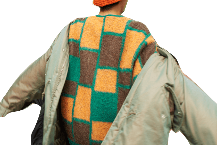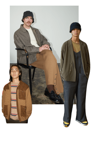 2020年秋冬のストリートスタイルは、ビッグシルエットは健在だけど、色彩や素材感はスポーティーから切り返しのムード。BEAMSでは、アスレジャーなスウェットやナイロンのトップスに代えて、毛足の長いモヘヤやアンゴラのシャギーニットをリコメンド。去年よりも少しだけクラシック、それが今季の気分。