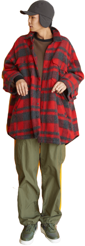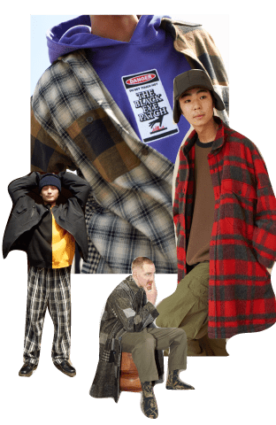 毎シーズン種類豊富に展開されるチェック。今年は柄も配色もクラシックでアメカジ感のあるタイプが多く揃った。もちろんBEAMSならではのアレンジがプラスされている。オンブレチェックはクレイジーパターンでビッグシルエットのネルシャツに、バッファローチェックはポンチョに。定番のチェックも新鮮に見えるはず。