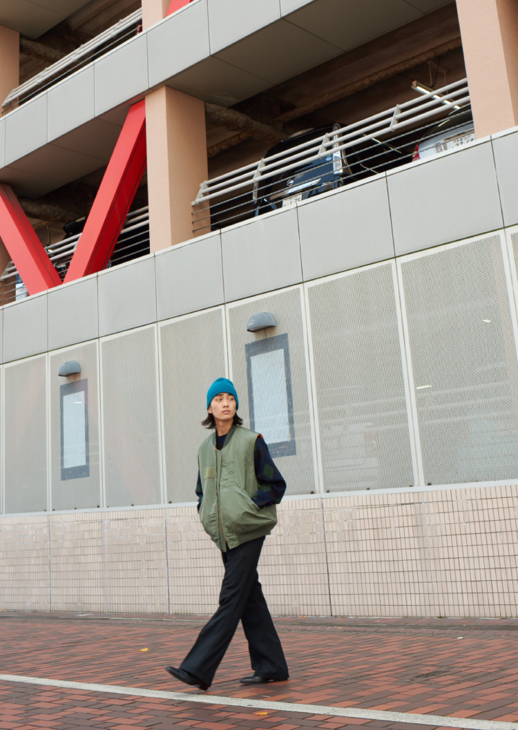 今期はこれまでのストリートスタイルに、コントラストの効いたカウンターを少しだけ。例えばボトムスをスラックスに変えてみよう。トップスがナイロンパーカでもフライトジャケットでもクリーンなスタイルが完成。BEAMSでは自宅で洗濯できてガンガンはけるスラックスが豊富にラインナップ。