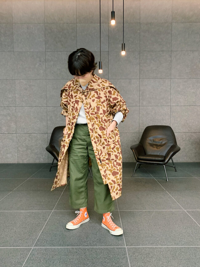 古着のハンティングレインコートをデザインベースに、柄も〈BEAMS BOY〉で起こしています!