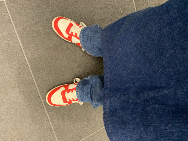私は古着のデニムパンツと合わせて、少し癖のある合わせに、、、👖笑