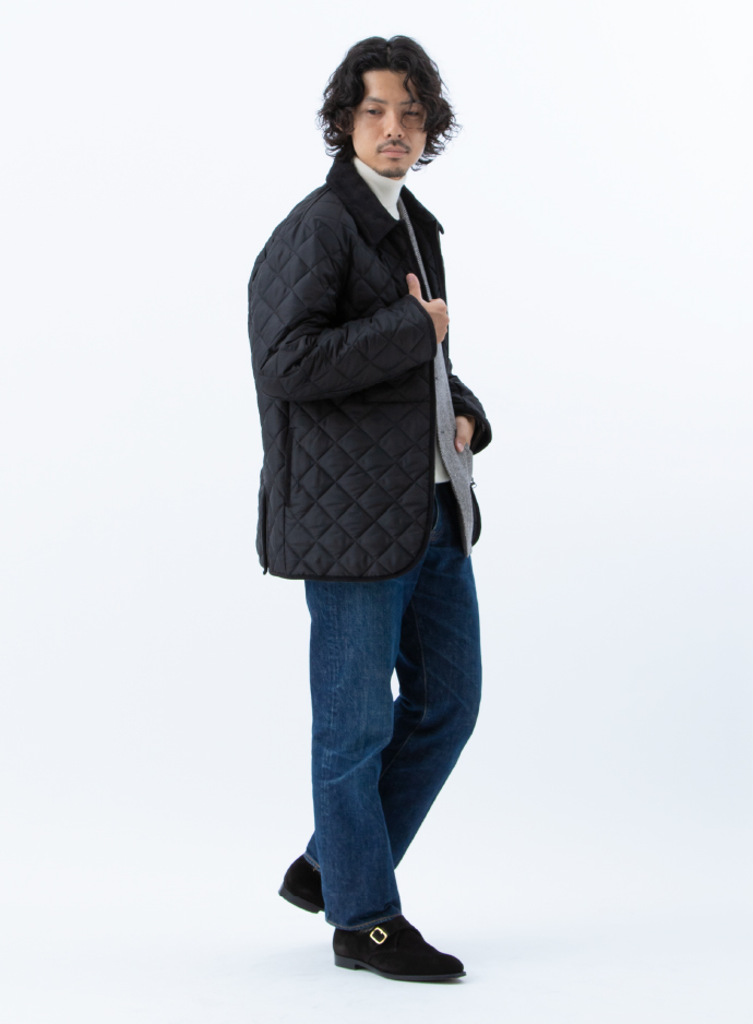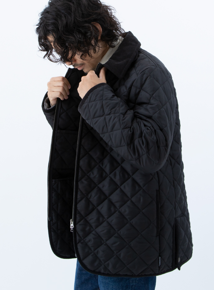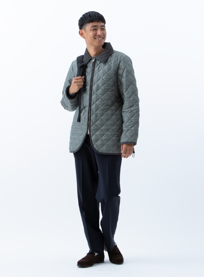 もうすでにお気づきの方もいらっしゃるかもしれません。じつは通常の袋ポケットではなく、サイドから手を突っ込めるスラッシュポケットを採用。モダンな佇まいにさらなる拍車がかかっています。表地・裏地・中綿のすべてに再生素材が使われ、表地には有害なフッ素化合物を一切含まない撥水加工「C-zero」を施すなど、環境に最大限の配慮をしながらも伝統的なキルティングのムードはそのまま。今年のエースの登板回数は多そうです。
