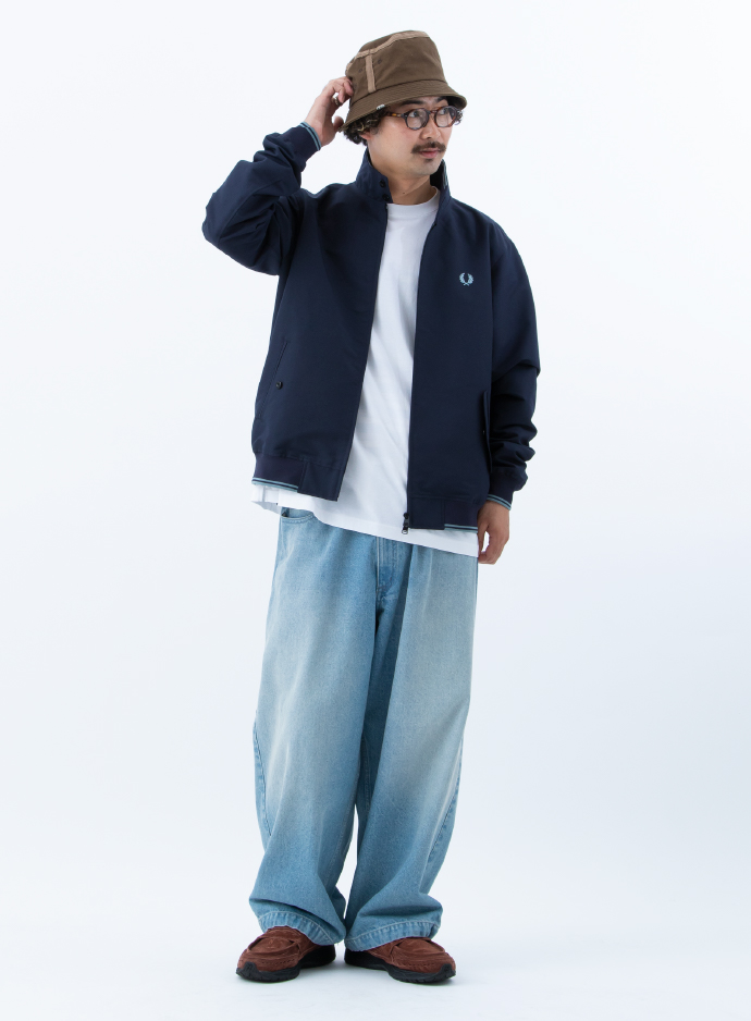 元々は雨の多い英国のゴルフ場での雨具として開発されたハリントンジャケット。そのため英国ブランドがルーツ面でも正統ですが、〈フレッドペリー〉は同時に、モッズシーンやストリートカルチャーとも親和性が高いことで知られます。だからこそハリントンジャケットのなかでも抜群にスタイリッシュなんですね。とりわけネイビーはスマートでいて大人の品格を漂わせます。もし巷のハリントンに苦手意識をお持ちだとしたら、このバランス感覚がきっと解決策に。ライトなショートアウターとしてのユースフルを実感するでしょう。
