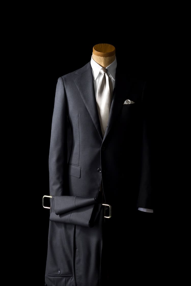 華美になりすぎない、肌触りのいい綾織り生地。豪州産のメリノウールを用い、尾州にて製織。