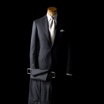じゃあ具体的にどこがわきまえているかと言うと、どんな場でも間違いのない三つ釦段返りに、日本が誇るスーツ地の名産地・尾州で製織したメリノウール生地を合わせる磐石のチョイス。冠婚葬祭は誰しもに訪れます。そのときはやっぱりプレーンがいい。デコに盛られたベリー&ベリーのパンケーキもいいけど、ツウになると最後はプレーンパンケーキで生地の(粉の)味を楽しむ、みたいな。ブラックスーツも生地の質感が味の決め手。冠婚葬祭オールOKと汎用性の高い黒スーツですが、こんな風にこだわっていれば玄人もまず認めるはず。苦労せずに洒落者たちを唸らせる一着といえましょう。