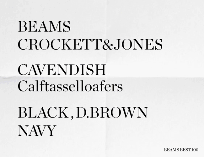タッセルローファー英国代表の一足、その名もキャベンディッシュ3は、実は〈ビームスF〉による別注が第一歩。ワールドワイドで好評を呼んだことから定番化したモデルなんです。日本人の足型にフィットするようウエストやヒールカップを小ぶりに仕上げられたことで、元来の小気味いい品が倍増し!