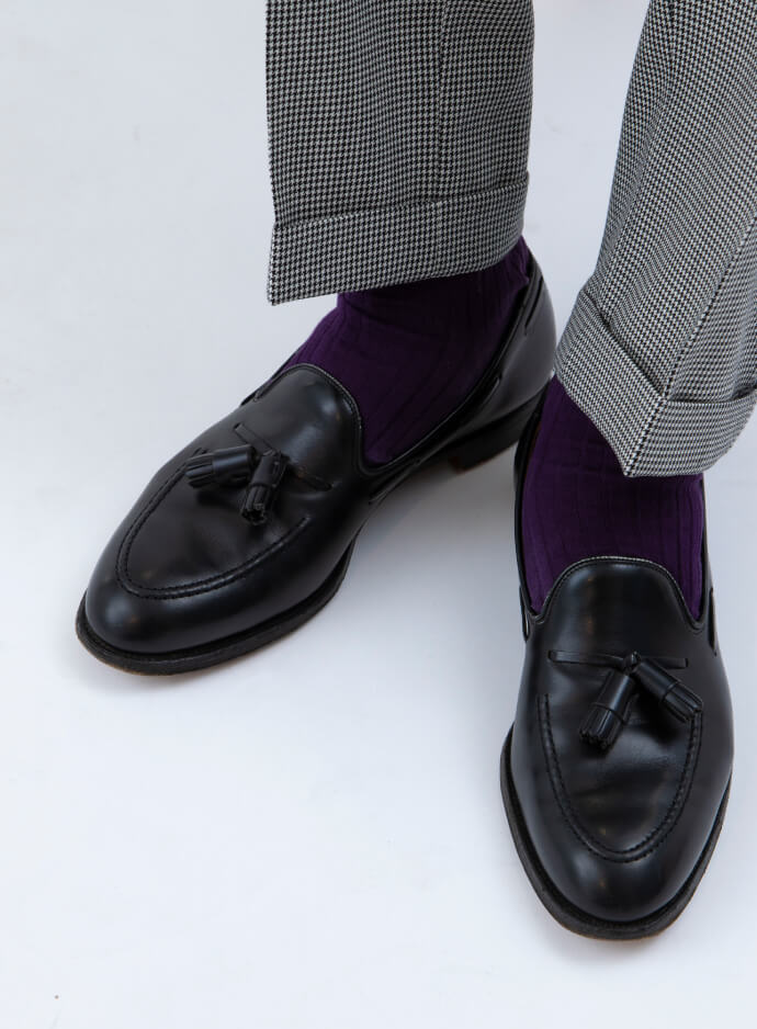 タッセルローファーのエレガント面に脚光を。ラバーソールも良いですが、レザーソールの上品な佇まいを楽しむのも一興です。