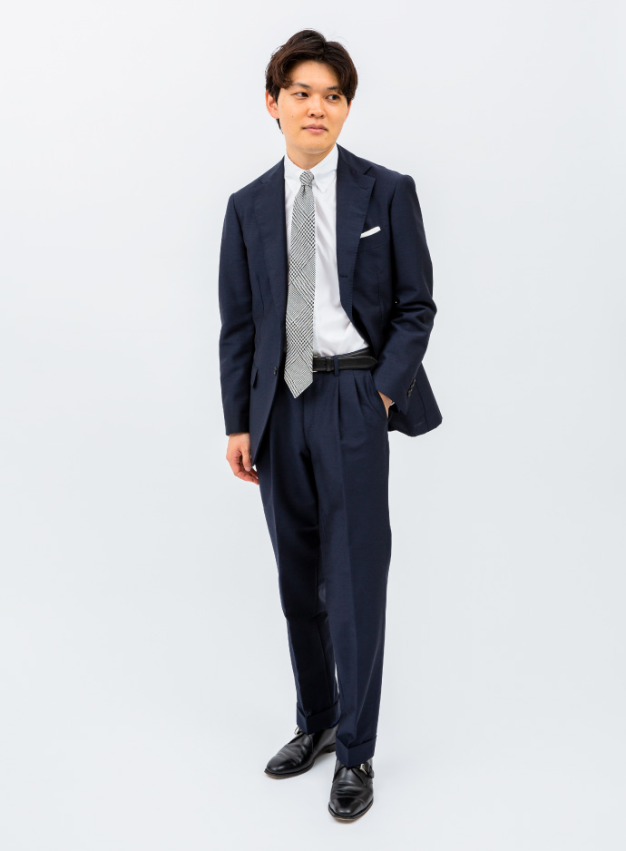「ベルトを買うなら、まずはコレ!」と言える、大人には欠かせないアイテム。冠婚葬祭のフォーマルスタイルからビジネスカジュアルまで、これ一本でカバーできます。無駄を削ぎ落としたエレガントな佇まいがいいですね。