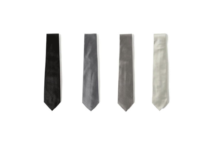 〈ジョン コンフォート〉は英国の老舗タイメーカーで、2017年に再上陸を果たし、レジメン柄や構築的なカッチリとしたタイを得意とするブランドです。めでたいシーンの定番であるシルクサテンのソリッドタイにおいても、その特徴であるカッチリとした作りはプラスに作用し、マジに誰でもきれいなノットが結びやすい。もちろん最低限のテクニックは必要ですが、普段タイをしない人でもカンタンに美しい結び目を作ることができます。なかなか納得できる結び目にならず、洗面所の鏡の前で何度も何度もタイを結び直したことのある(というかいつもそう)人にとっては、驚き&歓喜の一本になるでしょう。そもそも締めやすいタイのほうが上手な結び方を覚えやすいですしね。