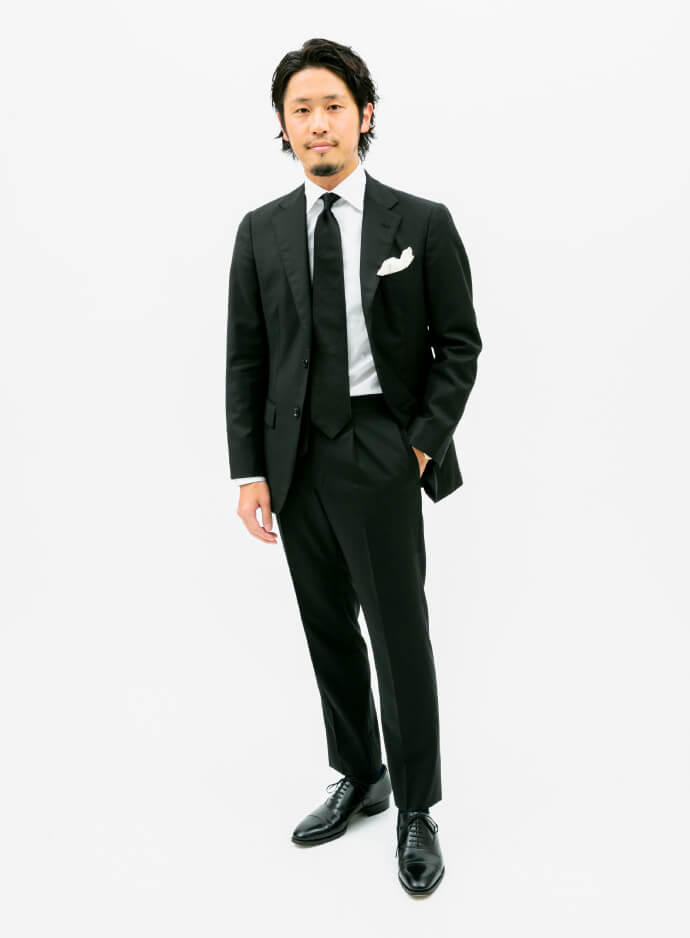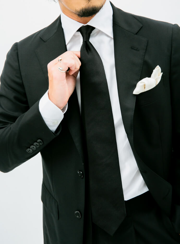 冠婚葬祭の際、ブラックのスーツスタイルの首元に。男を格上げする程よいボリュームと上質な生地が魅力ですね。これからも私のマイ定番として宜しく!