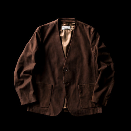 ノーラペルのいいとこは、気軽に羽織れる日常着になるという点。それに尽きます。衿ナシなのでレイヤードもしやすく、でも肩回りなんかちゃんと品がありますからね。ようはいいところ取り!Tシャツやパーカーをレイヤーするラフなスタイル、シャツやニットにオントップする上品なリラックススタイル、どちらも余裕でこなします。かつ、素材はキメ細やかなゴートスエードですから。真夏以外は季節感を問わず、カジュアルにも上品にも振ることができと、これまた贅沢かつ万能の素材!羽織ればきっと超現代的な利便性を実感するでしょう。