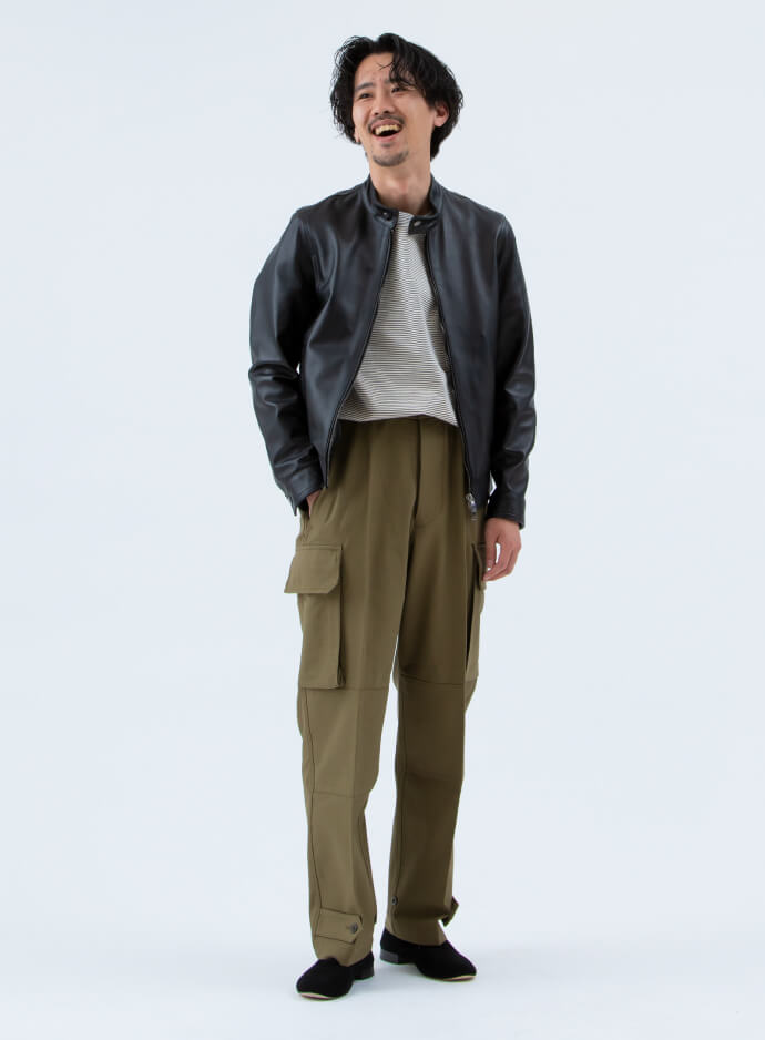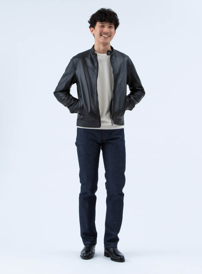 きめ細かく柔らかいレザーと洗練されたシルエットが相まって、とにかく着やすい。高級感も申し分なく、ワイルド×エレガントな魅力が溢れています。ラギットスタイルの主役にしたい一枚です。