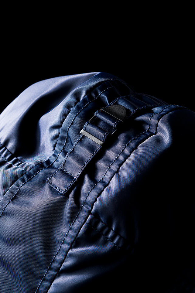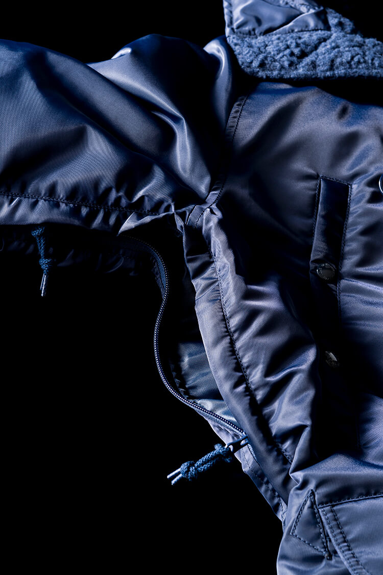 機能美の塊と称されるN-3B。フード裏のアジャスターさえ洗練されたデザインに見える。