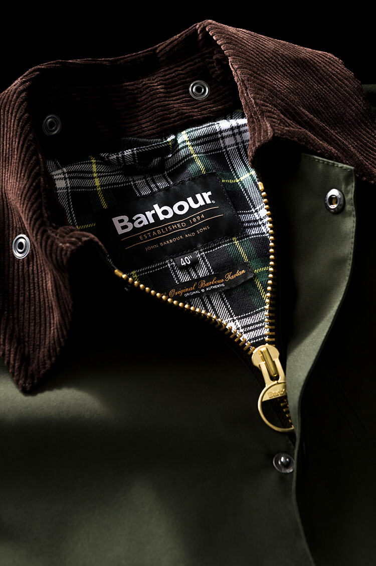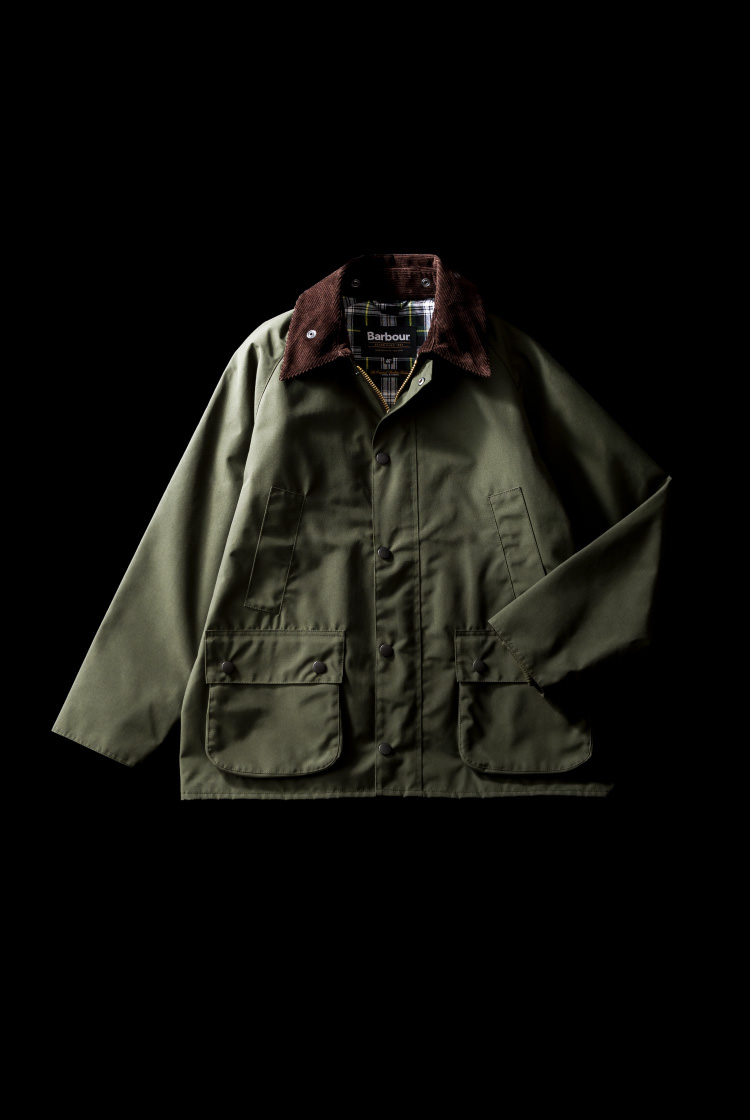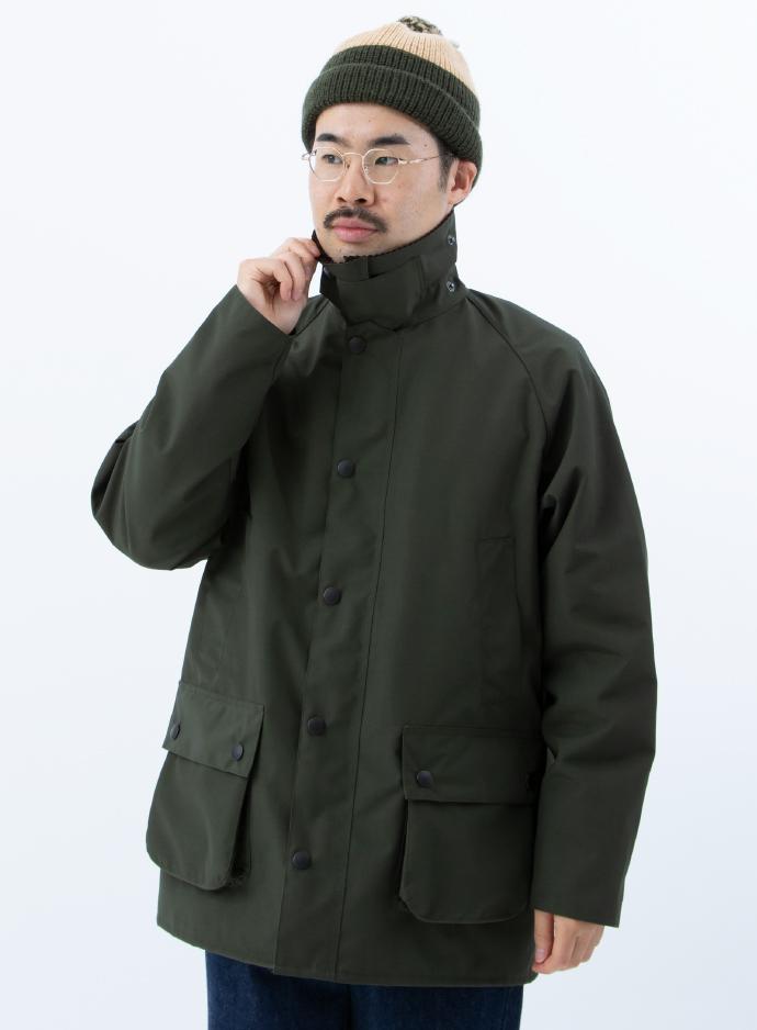 そもそも〈バブアー〉の定番のオイルドコットンとは、合繊もシームテープもなかった時代に考案された、当時の機能素材。そんな視点で言えば、現代のハイテクたる2層構造の生地に置き換えているのは至極真っ当なアップデートと言えるでしょう。内側には撥水・透湿性のメンブレンを貼り合わせながら、表面の生地は光沢控えめのポリエステルなので程よいレトロさもしっかり漂います。機能と快適さは激変させつつ、印象はしっかりキープしているのが粋でしょう。