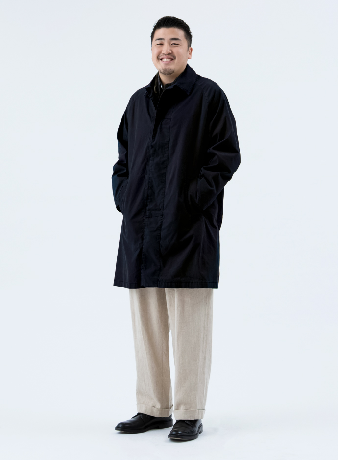 やや小さめの衿が垢抜けポイント。このさじ加減が普通にウマいんだよなぁ。ちなみにステンカラーとは和製英語であり、欧米ではバルマカーンコートとの呼称が一般的。