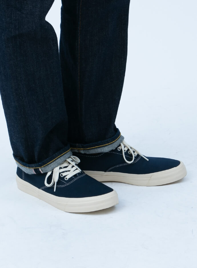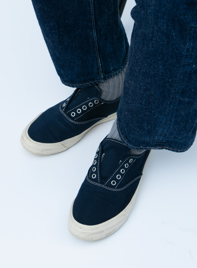 そんな万能の紺デッキを手掛けている定番的アメリカブランドは数社ありますが、ことオーセンティックさを追求するなら、〈スペリー トップサイダー〉こそが正統! しかも本作は熱意溢れる〈ビームス プラス〉企画担当者による米国側への直談判で、1940年代に米軍へと支給されていた木型をベースにしたクラシックなフォルムへと先祖返りを果たしています。他ブランドの紺デッキと比べ、必要以上なサーフの薫りも抑えられ、日常に履く一足として合わせやすいことこの上なし。これは絶対にスベらんわぁ~。