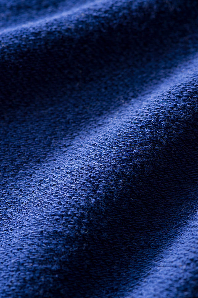 ぷっくり膨らんだ裏毛は見た目以上に肌触りソフト。吊り編み特有のもっちり感も、リピーターを生む理由のひとつ。左袖にはお馴染みのループウィラータグもつきます。