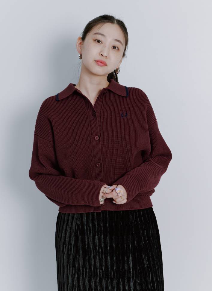 程よく厚みのあるリブニットで上品な佇まいに。襟とブランドロゴの配色具合がアクセントになってくれます。