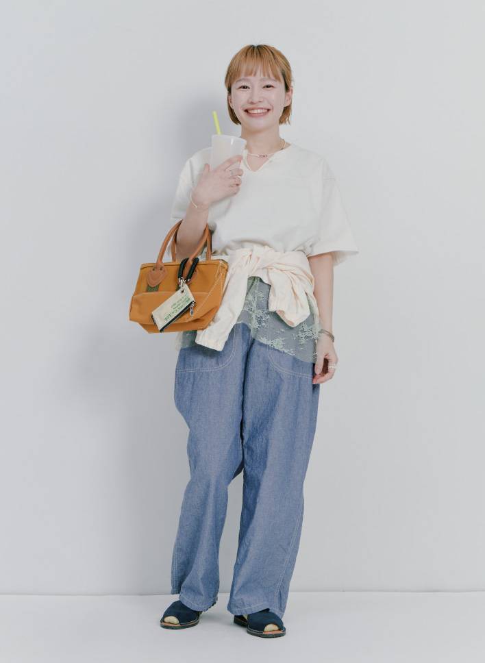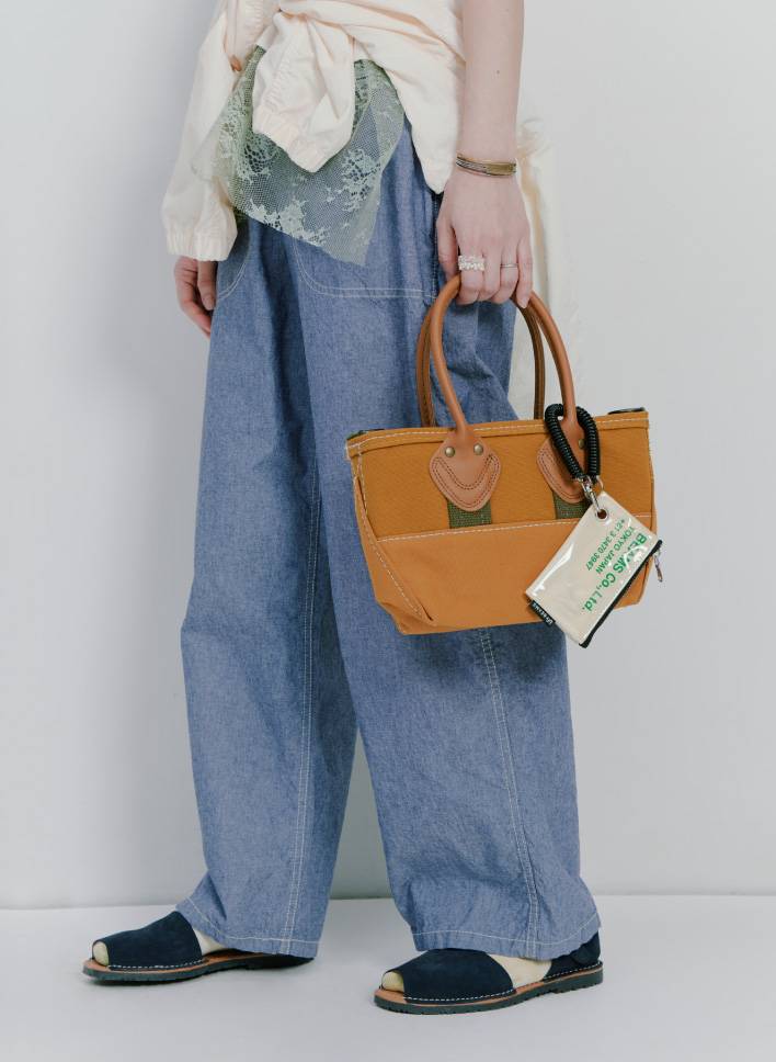 「強度と防水性に優れた生地を採用しているのでとにかくガシガシ使えるところがいい! 着用したピンクのセットアップをはじめ、どんな服にも馴染んでくれる優秀さもたまりません。使った分だけ柔らかくなり、アタリも出るので経年劣化を楽しんでください」