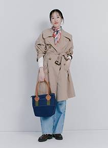 「人気の〈エル・エル・ビーン〉の別注バッグには、トレンチコートとスカーフを合わせたいと、ずっと思っていました。 バッグのレザーハンドルが、カジュアルスタイルに上品さを加えくれるので、トレンチスタイルなどの大人な雰囲気の着こなしにもすっと溶け込んでくれます」