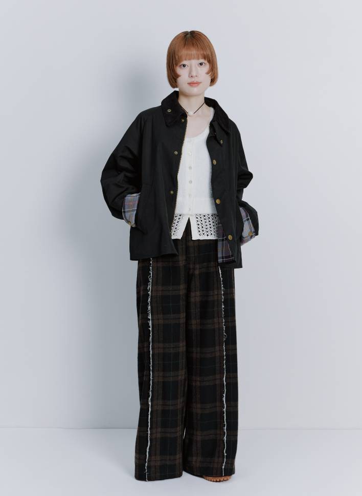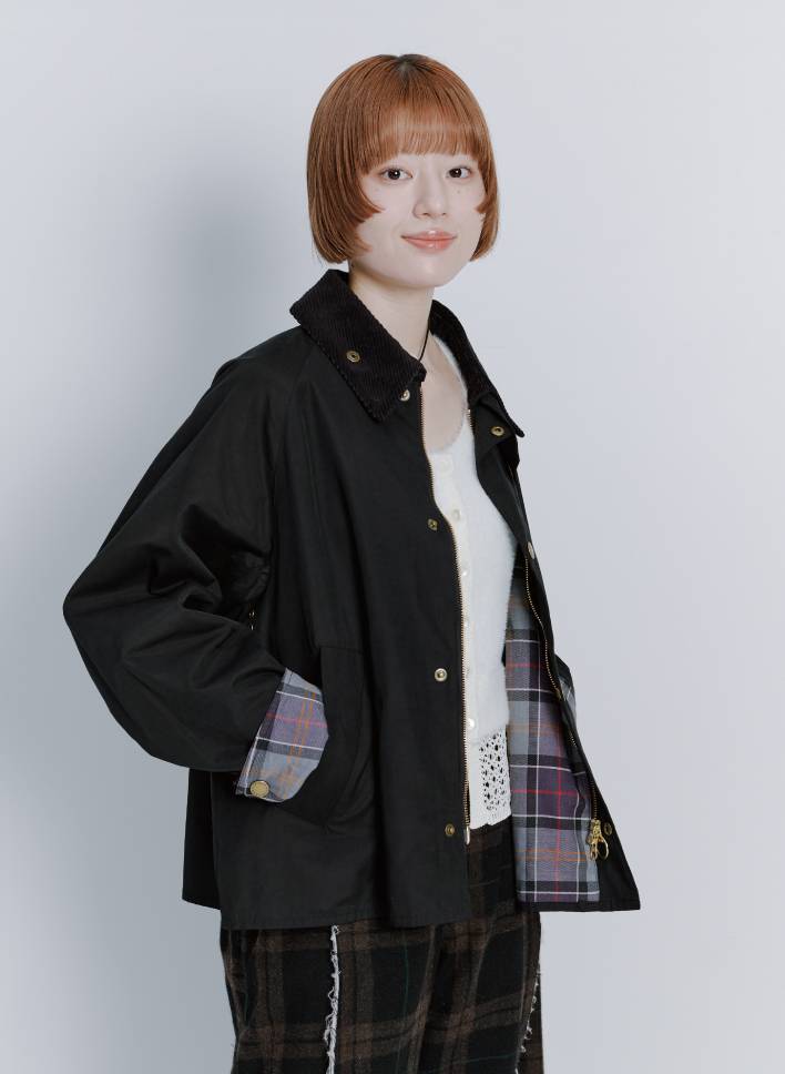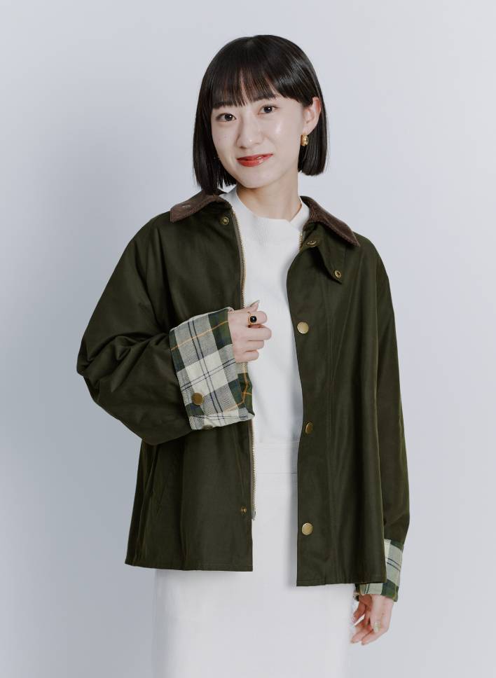 「毎シーズン大人気の〈バブアー〉の別注ジャケットは、袖口とパンツのチェックをリンクさせて着こなしを考えてみました。インナーのトップスはタイトめのものを合わせてすっきりとした印象にしています。デニムとローファーのハンサムなスタイリングも楽しみたいです」