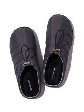 「上質な光沢感のあるナイロン素材に、ドローコードやメタリックパーツを効かせたモダンなデザインが印象的です。ふんわりと包み込まれるような快適な履き心地は、日常から旅先まで心地よく寄り添ってくれます。収納袋付きで、ギフトにもぴったりですよ」