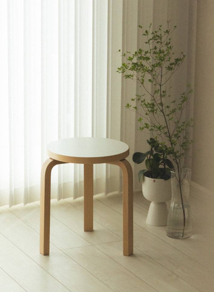 「1年ほど前に購入したスツールは家のどこへ置いても程よい存在感を放つ、シンプルで美しいデザインが魅力。高品質だからこそ90年以上たっても愛され続け、単なる家具を超えてアートとして空間を彩ってくれています。スタッキングした佇まいも素敵なので、2脚3脚と増やしていきたいです」