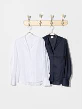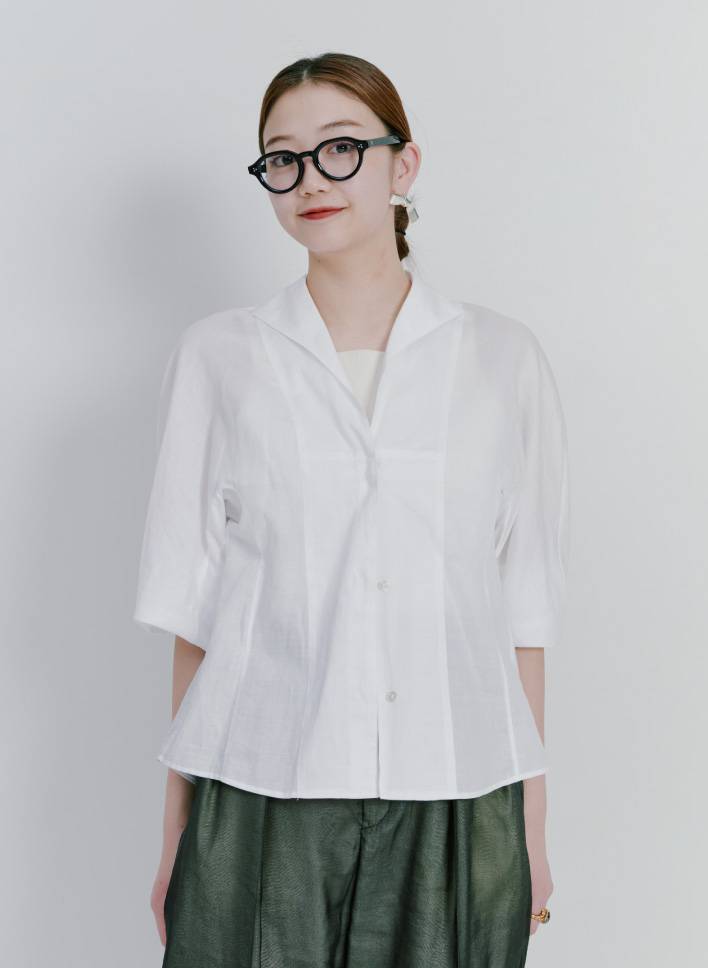 シャツ本来の持つ凛とした佇まいに柔らかさが加わった、女性らしいフォルムの美しいシャツ。オープンカラーは顔まわりをすっきりと見せてくれ、ふんわりとしたスリーブが気になる二の腕や肩周りをさりげなくカバー。上品な透け感が涼やかな印象の生地は肌離れがよく、真夏でもさらりと軽やかに着られるのも嬉しい。襟を少し立たせて着るとよりエレガントな雰囲気に。